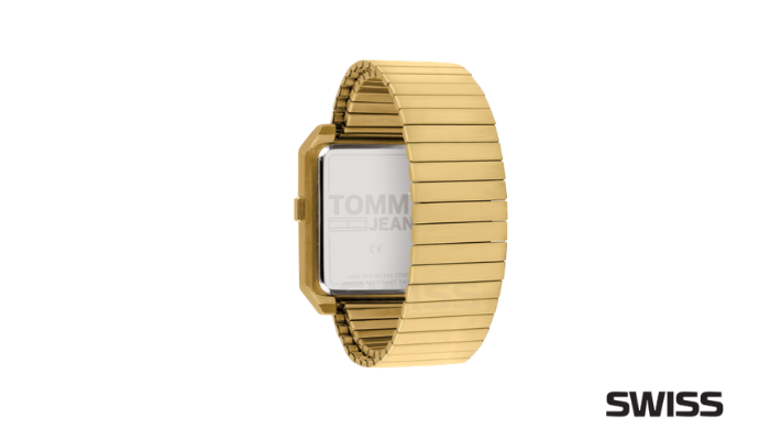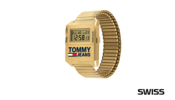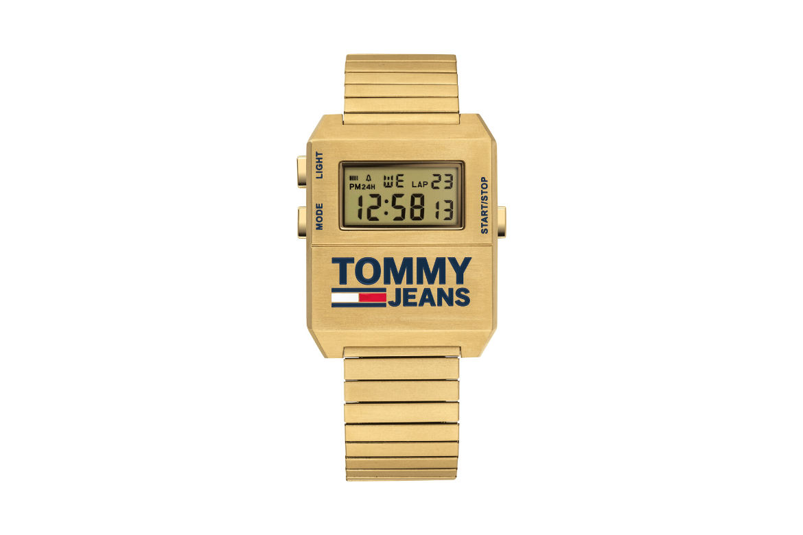 Czarny lub granatowy kolor to najczęstszy wybór, jeśli ktoś kupuje zegarek męski. Złoty czasomierz jest znacznie częściej wybierany przez kobiety. Marka Tommy Jeans przełamuje ten schemat! W tym czasomierzu złota jest koperta, pasek oraz cyfrowy wyświetlacz. Ten jednolity kolorystycznie projekt idealnie uzupełnia duże logo, umieszczone na dole koperty.