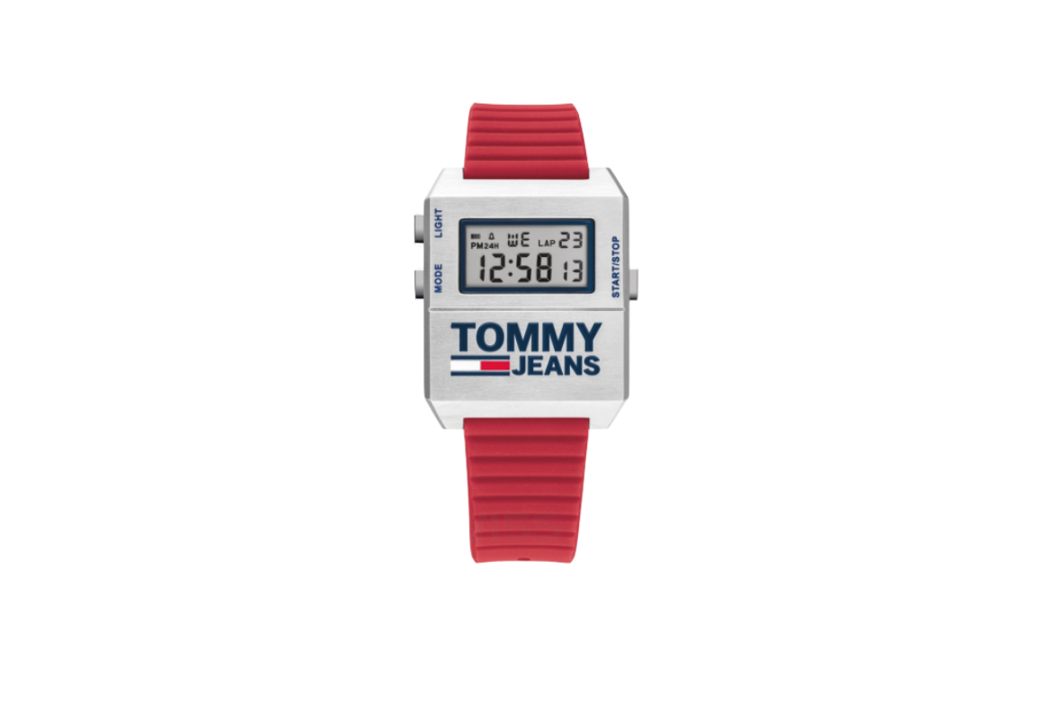 Ten model charakteryzuje również wysoką wodoszczelnością na poziomie 30 m – jest on odporny nie tylko na zachlapania i mycie rąk, ale również na deszcz. To jednak nie wszystko, co wyróżnia prezentowany zegarek męski. Czerwony pasek w połączeniu z prostokątną stalową kopertą oraz szarą tarczą (a właściwie wyświetlaczem) to niby proste, ale niezwykle zaskakujące i modne połączenie. Jeden mocny kolor jest tu równoważony przez stonowaną i neutralną szarość, dzięki czemu model Tommy Jeans 1791674 staje się bardziej uniwersalny. Pasuje nie tylko na siłownię, ale również na co dzień do casualowych stylizacji, a także tych smart-casualowych, w których jeansy łączone są z elegancką koszulą lub codzienną marynarką.