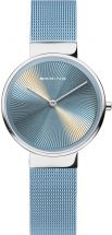Tarcza zegarka łączy w sobie kolory różu i bieli, tworząc harmonijne połączenie, które doskonale kontrastuje z okrągłym kształtem koperty. Ten model zegarka Bering łączy w sobie przyjemność noszenia z wyrafinowanym designem, który z pewnością przyciągnie spojrzenia.