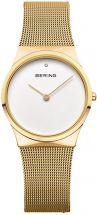 Bransoleta meshowa wykonana ze stali w kolorze złotym nadaje zegarkowi niepowtarzalnego charakteru, jednocześnie doskonale komponując się z okrągłą kopertą również wykonaną ze stali w złotym odcieniu. Delikatność i finezja połączona z solidnością i prestiżem - to wszystko znajdziesz w zegarku Bering symbol 12131-330.