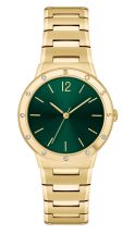 Tarcza zegarka również utrzymana jest w złotym kolorze, co nadaje całości jednolity i elegancki wygląd. Delikatne indeksy i wskazówki dodają zegarkowi klasy i szyku, jednocześnie zapewniając precyzyjne wskazanie czasu.