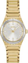 Bransoleta wykonana z tego samego materiału co koperta doskonale współgra z całością, tworząc spójną i harmonijna całość. Połączenie srebrnego i złotego koloru bransolety nadaje zegarkowi Boss niepowtarzalny charakter, który z pewnością przyciągnie wzrok i podkreśli indywidualny styl noszącej go kobiety.
