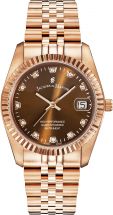 Cała bransoleta zegarka, wykonana z wysokogatunkowej stali, została pokryta złotym odcieniem, nadając zegarkowi Jacques du Manoir elegancji i luksusowego charakteru. Klasyczny, okrągły kształt koperty również został wykonany z tej samej stali, pokryty złotym powłoką, która pięknie mieni się w słońcu, dodając zegarkowi wyjątkowego blasku.