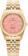 Zegarek ten został stworzony z myślą o kobietach ceniących klasykę i styl. Bransoleta oraz koperta wykonane ze stali nadają mu trwałości i elegancji, zaś kolor złoty dodaje mu szlachetności i prestiżu. Kształt okrągłej koperty sprawia, że zegarek idealnie dopasowuje się do kobiecego nadgarstka, podkreślając jego delikatność i finezję.