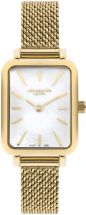 Koperta złożona z połączenia stali i mosiądzu to harmonijne połączenie trwałości i estetyki. Kolor złoty koperty harmonizuje z bransoletą, tworząc spójną całość. Jej prostokątny kształt nadaje zegarkowi nowoczesny i minimalistyczny charakter, który doskonale komponuje się z wszelkimi modowymi trendami.