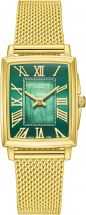 Stalowa bransoleta meshowa dodaje lekkości i subtelności, doskonale komponując się z kwadratową kopertą oraz złotym wykończeniem, które nadaje mu niezwykłego prestiżu. Klasyczny, srebrny kolor tarczy z subtelnym logo marki stanowi doskonałe tło dla złotych indeksów i wskazówek.