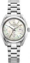 Tarcza zegarka, również w złotym kolorze, dodatkowo ozdobiona delikatnym perłowym połyskiem, nadaje mu subtelności i wyrafinowania. Precyzyjne wskazówki oraz dopracowane indeksy tworzą czytelny i estetyczny wygląd, ułatwiający odczyt czasu. Zegarek ten to nie tylko praktyczne narzędzie do mierzenia czasu, ale także wyjątkowy element biżuterii, który podkreśli indywidualny styl każdej kobiety.