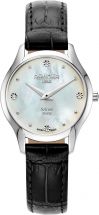 Jednym z kluczowych elementów tego zegarka jest materiał paska - wykonany z wysokiej jakości skóry w kolorze czarnym. Skórzany pasek nie tylko dodaje elegancji i klasy, ale także zapewnia komfort noszenia i trwałość przez wiele lat. Klasyczny czarny kolor paska doskonale kontrastuje z srebrnym kolor koperty, tworząc harmonijną kompozycję, która przyciąga wzrok i podkreśla indywidualny styl noszącej zegarek kobiety.