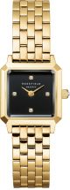 Czarna tarcza z delikatnym logo marki Rosefield stanowi eleganckie tło dla złotych wskazówek i indeksów, zapewniając czytelność i subtelną elegancję. Kontrast kolorystyczny między tarczą a złotymi elementami dodaje zegarkowi charakteru i sprawia, że staje się on centralnym punktem każdej stylizacji.