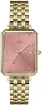 Zegarek posiada wykonaną z wysokiej jakości stali bransoletę w kolorze złotym, która delikatnie opływa nadgarstek, dodając mu szyku i elegancji. Klasyczny kształt prostokątnej koperty również wykonany jest ze stali, co zapewnia trwałość i solidność konstrukcji zegarka.