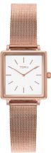 Zegarek posiada kwadratową kopertę, co nadaje mu nowoczesny i oryginalny wygląd. Ten nietypowy kształt sprawia, że zegarek Torii jest wyjątkowy i wyróżnia się spośród innych modeli. Czarna tarcza z subtelnymi złotymi detalami nadaje zegarkowi eleganckiego charakteru, jednocześnie zapewniając czytelność wskazań czasu.