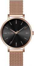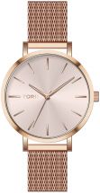 Zegarek ten posiada stalową bransoletę meshową w kolorze różowego złota, która doskonale współgra z równie urokliwą stalową kopertą w tym samym odcieniu. To połączenie sprawia, że zegarek prezentuje się niezwykle elegancko i kobieco, dodając blasku i szyku każdej stylizacji.