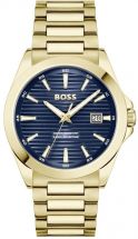 Złociste detale, jak logo Boss na pasku czy numeracja na granatowej tarczy, dodają subtelnej nuty luksusu, podkreślając wysoką jakość i prestiż marki. Klasyczne kolory granatu oraz stali doskonale komponują się ze sobą, tworząc harmonijną całość, która przyciąga wzrok i dodaje charakteru zarówno wieczornym kreacjom, jak i codziennym stylizacjom.