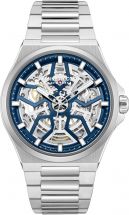 Materiał bransolety oraz koperty to wysokiej jakości stal, co zapewnia nie tylko trwałość, ale także elegancki wygląd. Klasyczny kolor czarny został wykorzystany zarówno na bransolecie, jak i kopercie, co dodaje zegarkowi wyrafinowanego charakteru. Natomiast kolor tarczy został zaprojektowany w kontrastowym czarno-transparentnym wykończeniu, co nadaje mu unikatowego i nowoczesnego wyglądu.