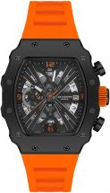 Czarna tarcza z subtelnymi elementami wyróżniającymi doskonale kontrastuje z pozostałymi kolorami zegarka, nadając mu prestiżowego wyglądu. Kształt prostokątnej koperty dodaje zegarkowi unikalnego charakteru, nadając mu oryginalności i nowoczesnego stylu.