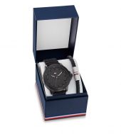 Czarny kolor bransolety i koperty nadaje zegarkowi Tommy Hilfiger wyjątkowego charakteru, dodając nuty elegancji i tajemniczości. Klasyczny, okrągły kształt koperty doskonale komponuje się z minimalistycznym designem tarczy, która również utrzymana jest w czarnym kolorze, co nadaje zegarkowi spójny i harmonijny wygląd.